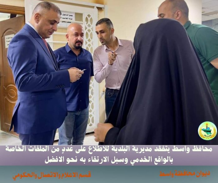 محافظ واسط يتفقد مديرية البلدية لمناقشة عددٍ من الملفات الخاصة بالواقع الخدمي وسبل الارتقاء به نحو الأفضل