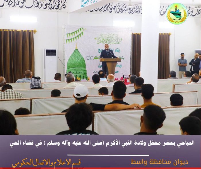 متابعة وتحرير:رحيم زاير العتابي حضر محافظ واسط الدكتور محمد جميل الى الحفل البهيج الذي اقيم بمناسبة الولادة المباركة للنبي الأكرم محمد (صلى الله عليه وآله وسلم) بحضور شخصيات اجتماعية وسياسية…