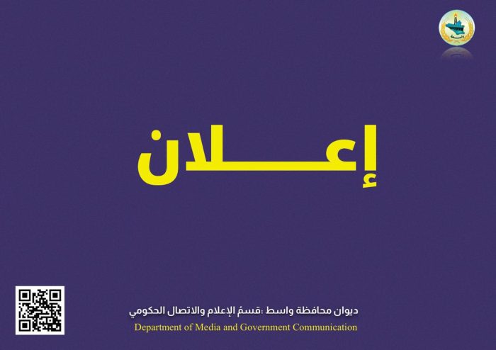 إعلان صادر عن قسم العلاقات والمراسم في ديوان محافظة واسط