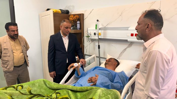 محافظ واسط يجري زيارة لعيادة مدير الشركة العامة لتجارة الحبوب فرع واسط الذي يرقد في المستشفى بأثر تعرضه لحادث دهس في مدينة الكوت