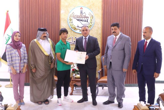 المياحي يكرم الرياضي حسين نصيف البدري الحاصل على بطولة العالم في رياضة الكيك بوكسن