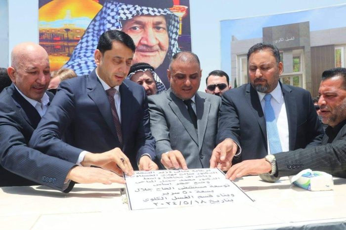 محافظ واسط والامين العام لمجلس الوزراء يضعان حجر الأساس لتشييد مستوصف سعة 50 سرير كملحق لمستشفى الحاج جلال الكناني