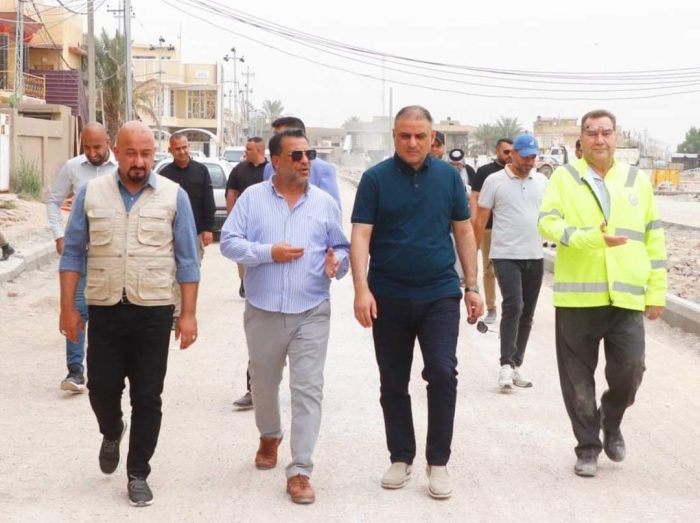 المياحي ..خلال جولة ميدانية يتفقد مشروع تطوير حي الشهداء في مدينة الكوت