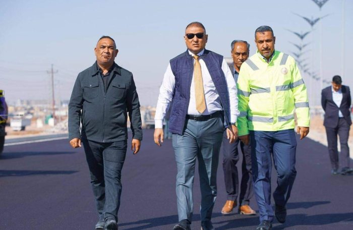 المياحي يتابع ميدانياً تنفيذ مراحل الإكساء بطبقة الأسفلت النهائية لمشروع تطوير مدخل الكوت – قضاء الحي