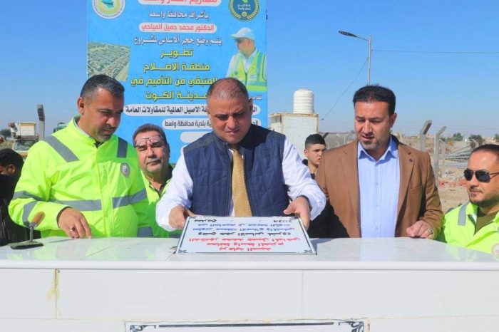 المياحي يضع حجر الاساس لمشروع تطوير وتأهيل منطقة الاصلاح في الجانب الأيمن لمدينة الكوت